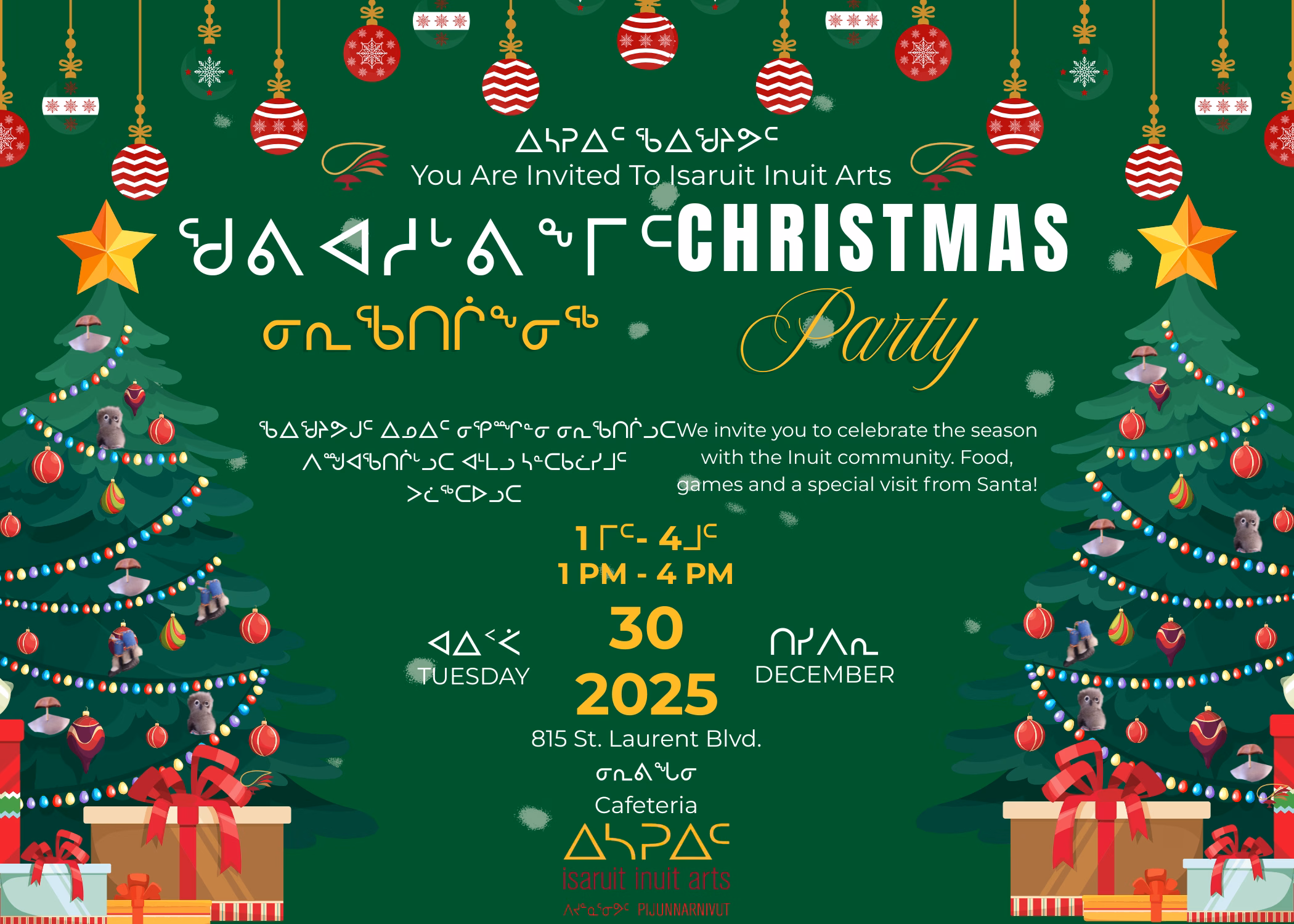 We invite you to celebrate the season with the Inuit community. Food, games and a special visit from Santa!