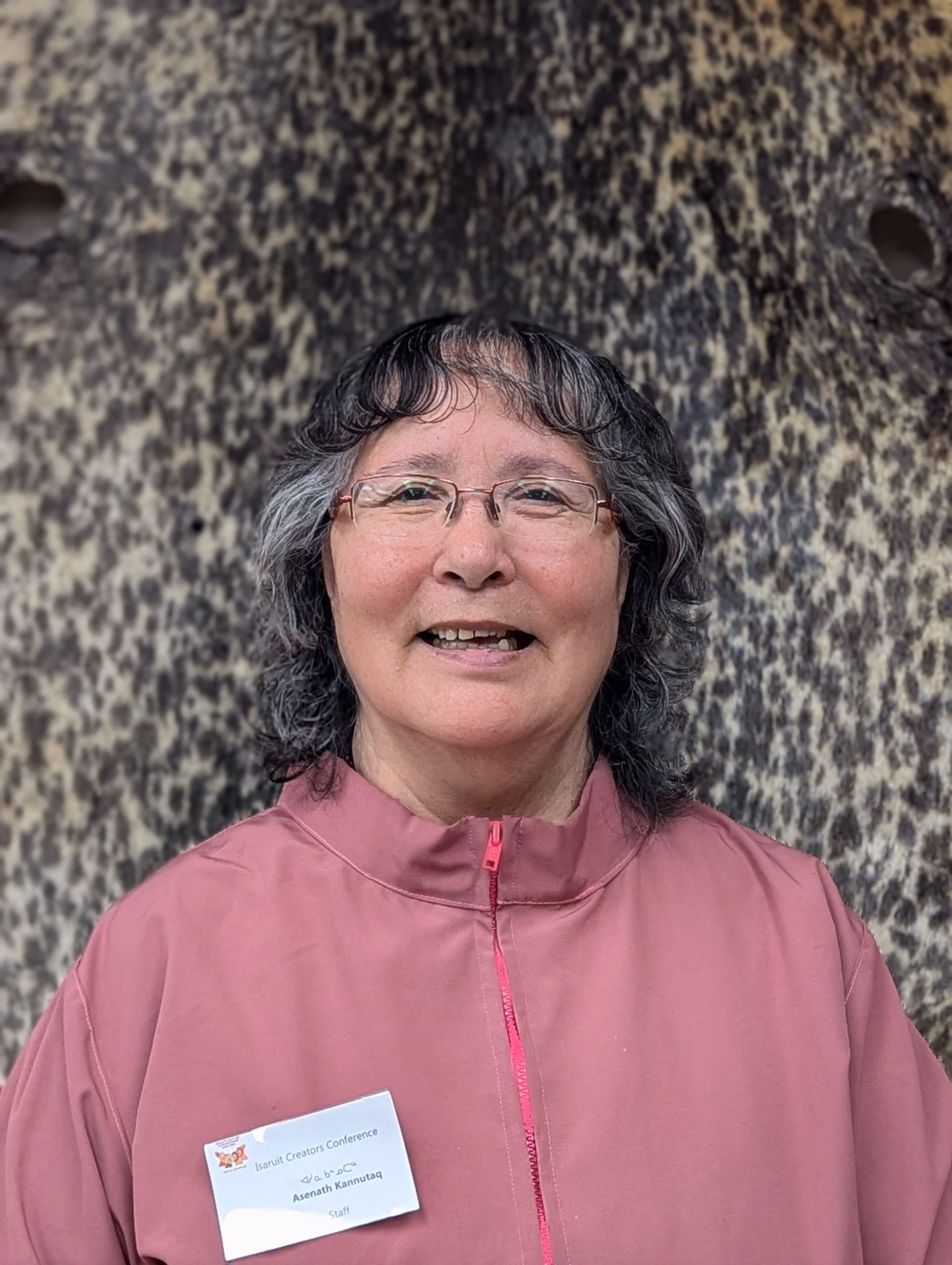 Asenath Kannutaq was born near Hall Beach Nunavut and grew up in outpost camp, only moving there in her teens. Asenath went to Atanaarjuaq high school until grade 8 and then worked as the 1st postmistress at the Hall beach post office until the birth of her 1st child. Asenath learned how to sew parkas from her older sister and would give them to her family or keep them for herself. At her jobs, she learned patience and kindness towards her customers and the general public, which she utilizes to this day. She learned to overcome her shy nature through her work. Kannutaq says her passion for the arts started from her children. Having to sew mittens, boots, clothing, etc. made her work harder and grew her love for the craft. Asenath works at the centre as an elder consultant and as a sewing instructor for the local Inuit community.