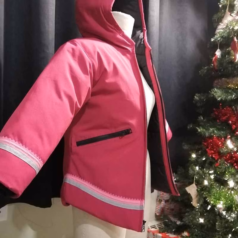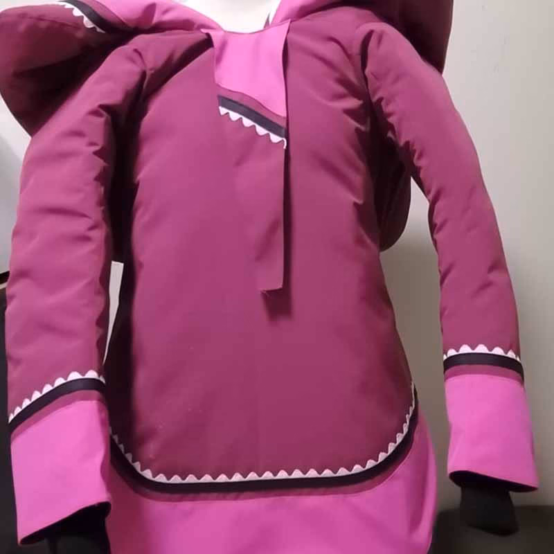 Darlene is from the community of Pond Inlet. She loved to watch her grandmother sew all the time when she was growing up, and then when Darlene was in grade 5 in Pond Inlet she learned the basics of sewing and has been sewing traditional mitts and kamiks and designing and sewing outerwear of all kinds and sizes out of fabric ever since. Darlene now lives in Clyde River with her own family. Everyone loves what she makes because she loves the creative aspects of designing clothes that are useful and beautifully made for the people in Clyde River.