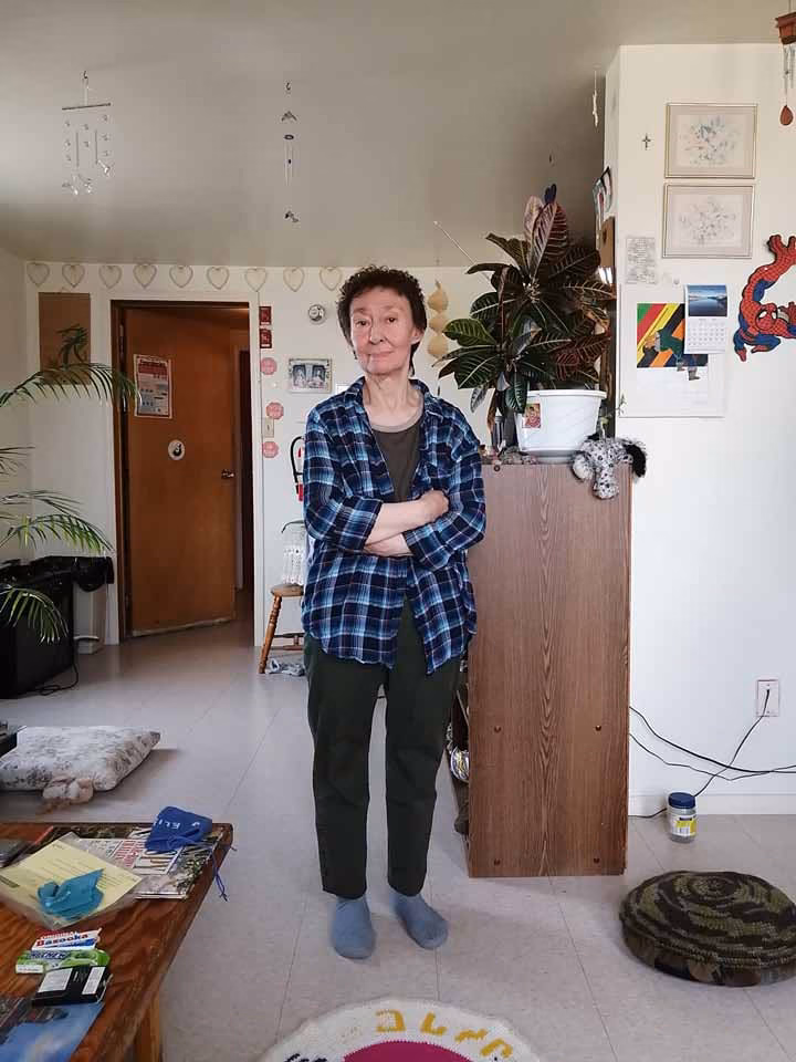 Artist’s background: Elisapee grew up in Clyde River area. She loved to play outside all day like the rest of the kids in those days. Her mother in law taught her how to crochet in the early 70’s. She now makes baby hats, adult hats, scarves, purses/bags and floor rugs with lettering of names and communities on them. People seem to love her work for it’s precision and ask her if she has time to show them how to do it. She used to coach people in crochet lettering projects, but more recently she just works on her own projects.