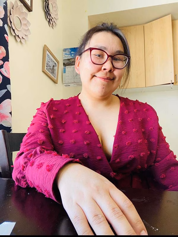 Tillikasak grew up in the community of Inujuak. Her teacher taught Tallikasak the basics of sewing when she was younger but decided that she is more interested in beading. Tallikasak finds beading to be very calming and good for her mind. She continues to create beautifully beaded earrings, and is especially fascinated with complex flower patterns.