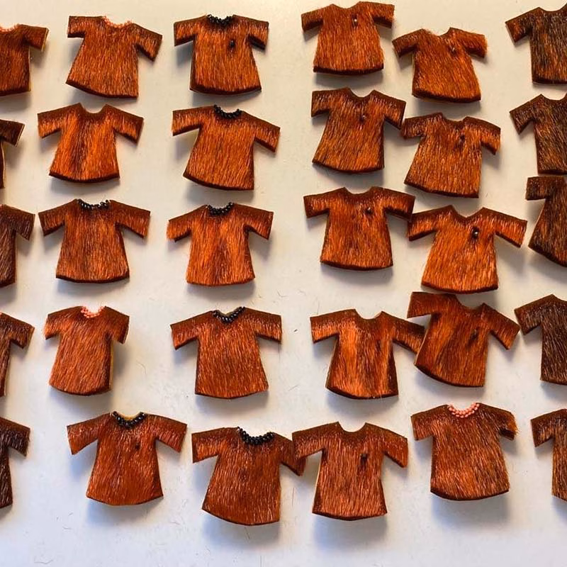 Preferred materials & subjects: Sealskin, embellishing them with beads.