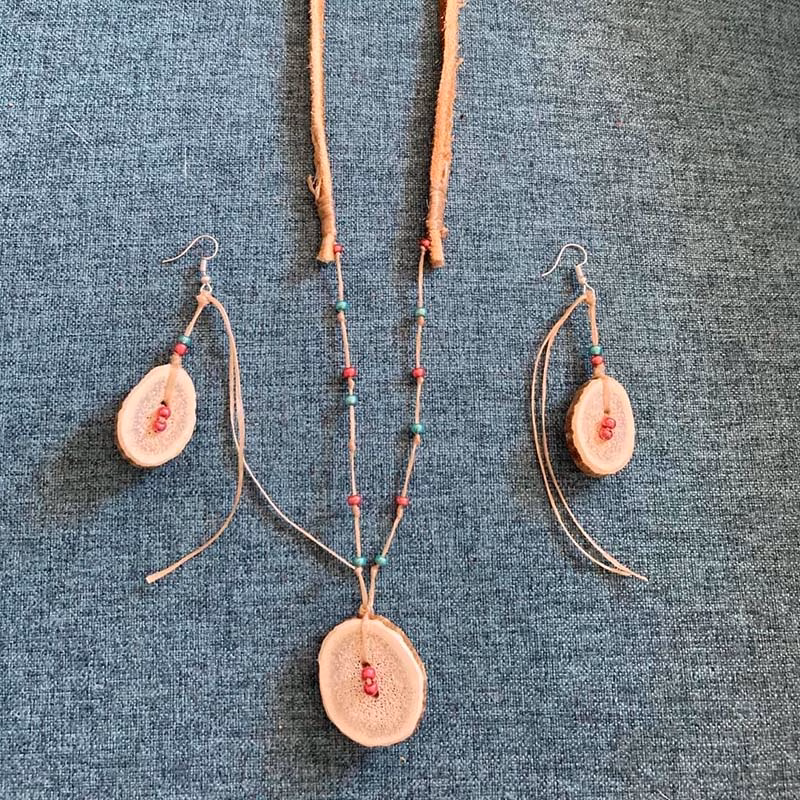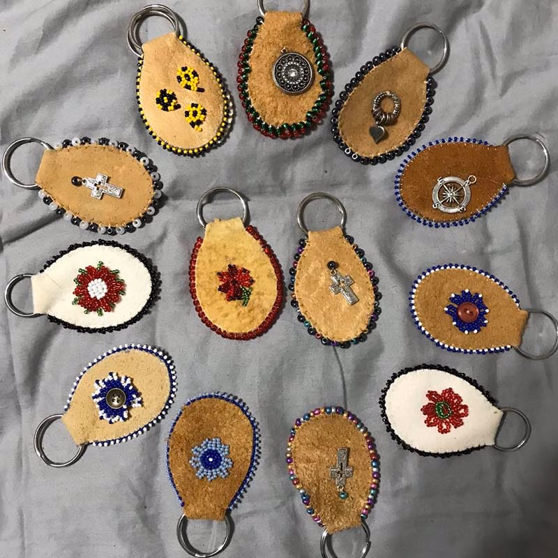 Edna is from the community of Kugluktuk, formally known as Coppermine River . She lived there until 1996, when she moved to the South. She loved to go camping with her parents during spring and summer when she was growing up. Edna has a long line of artists in her family, like carvers, painters, and tapestry makers. She loves to challenge herself with new projects. Edna finds it relaxing when she’s sewing now that her children are all grown up. Edna creates all varieties of sewn and beaded jewelry, bracelets, decors etc. She receives very good feedback from social media on her works.